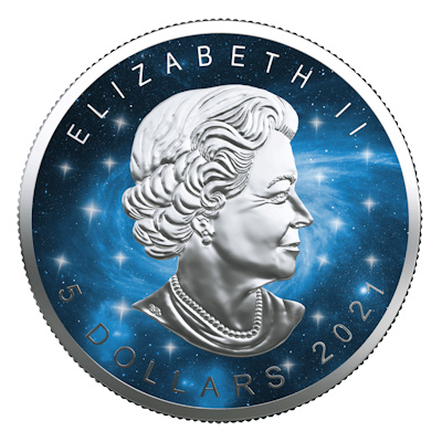 <<< Kanada - 5 CAD Maple Glowing Galaxy 2021 - 1 Oz Silber Color | |