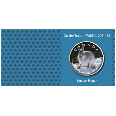 <<< Kanada - 5 CAD Maple Wildtiere Unterwegs Schneehase 2021 - 1 Oz Silber Color | |