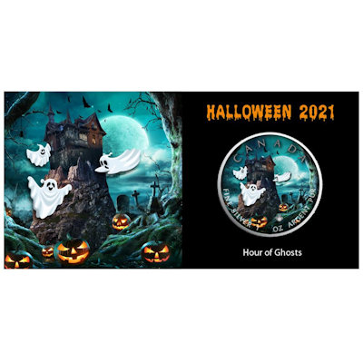 <<< Kanada - 5 CAD Maple Halloween Hour of Ghosts - 1 Oz Silber Color | |