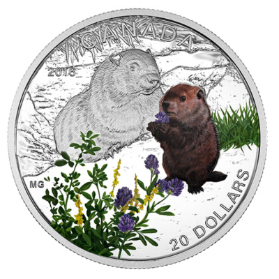 | Kanada - 20 CAD Tierbabies Murmeltier 2016 - 1 Oz Silber | ||