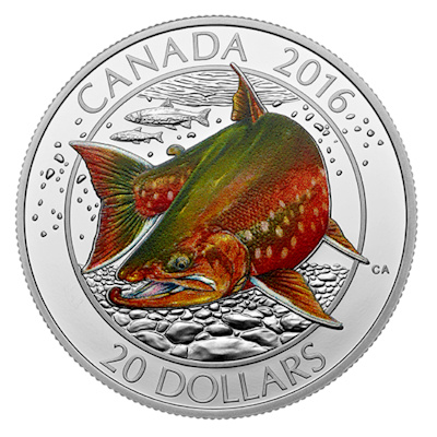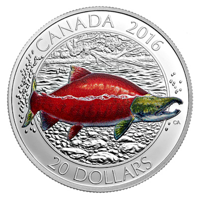 | Kanada - 20 CAD Kanadische Lachse 3. Ausgabe 2016 - 1 Oz Silber | ||