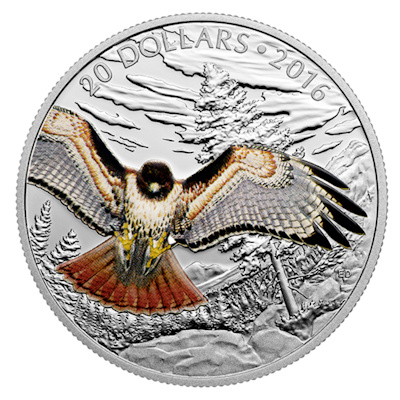 Kanada - 20 CAD Tierserie Rotschwanzbussard 2016 - 1 Oz Silber | ||