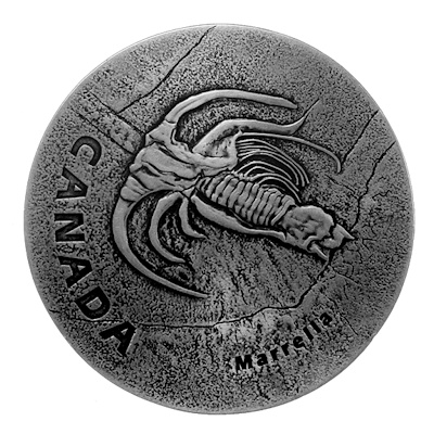 Es handelt sich hier um die 4. Ausgabe der Serie und das Motiv zeigt die Versteinerung eines Marella. Der Marrella hat mit seinen geschwungenen Stacheln und gefiederten Beinen einen unverwechselbaren Abdruck in Stein hinterlassen - und auf dieser geschichtlichen Münze. Der Kambrium-Arthropode ist lebensgroß und wird durch die Antik Finish Veredelung perfekt in Szene gesetzt. Während die sorgfältig gemeißelte Steinstruktur nichts weniger als atemberaubend ist, verleiht sie dieser Nachbildung eines Marrella-Exemplars, das aus dem fossilreichen Burgess Shale des Yoho-Nationalparks in British Columbia geborgen wurde, einen zusätzlichen Hauch von Authentizität. |