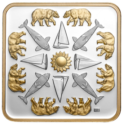 Geschichte und Kultur liegen tief in Nordkanada, wo die in Eis gehauene Landschaft wunderschön, furchterregend und endlos faszinierend ist! Die quadratische Motivseite vereint eine Mischung aus fein gravierten und selektiv vergoldeten Emblemen, die den Geist der kanadischen Arktis verkörpern - vom ikonischen Karibu bis zur Kompassrose, die eine Geschichte der Erforschung symbolisiert, und der Inunnguaq, einer Form von Inukshuk , die traditionell den Weg weisen. |