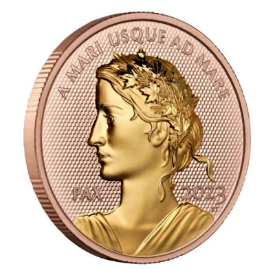 Das Motiv zeigt das Profil von Lady Peace, gekrönt von Ahornblättern. Ihr Gesicht wird von PAX 2023 und Kanadas nationalem Motto A MARI USQUE AD MARE (Von Meer zu Meer) begleitet. Die Vorderseite zeigt das Bildnis Ihrer Majestät Königin Elizabeth II. Die Münze besteht aus ca. 1 Oz Feingold in der Prägequalität Polierte Platte, Ultra High Relief mit Sondereffekt des Hintergrunds und ist auf nur 500 Stück weltweit streng limitiert. Die Auslieferung erfolgt im Original-Etui mit Umverpackung und nummeriertem Echtheitszertifikat. |