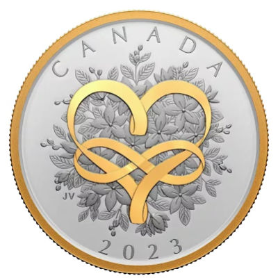 | Kanada - 20 CAD Celebrate Love 2023 - 1 Oz Silber PP Gilded | ||