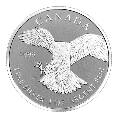 Die Royal Canadian Mint startete 2014 mit dem Wanderfalken eine neue 4teilige Serie zum Thema Raubvögel (Birds of Prey). Die Serie fungiert als Nachfolgeserie der überaus erfolgreichen Wildlife Ausgaben. Die Münzen kommen in 1 Oz Feinsilber und der hohen Reinheit von 999.9 Feinsilber. Es erscheinen jeweils 2 Ausgaben in 2014 und 2 in 2015. Von jeder Ausgabe werden wie auch bereits bei der Wildlife Serie nur 1.000.000 Stück produziert. Die Prägequalität ist die Stempelglanz und die Verpackung, wie bei den normalen Maple Leafs, in Tubes zu 25 Stück. | |