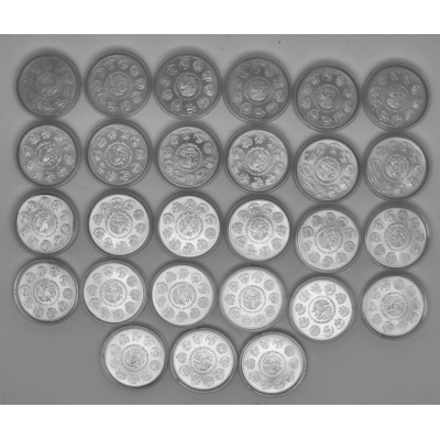Es handelt sich hier um einen Komplettsatz mit 27 * 2 Oz Feinsilbermünzen der Libertad Siegesgöttin aus Mexiko mit allen Jahrgängen von 1996 bis 2022.