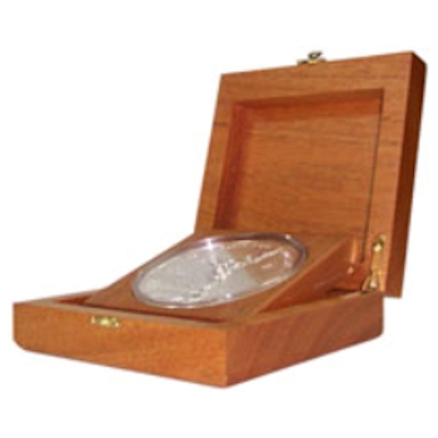 Die 1 KG Silbermünze aus der Libertad Serie kommt in exclusiver Holzschatulle mit nummeriertem Echtheitszertifikat.