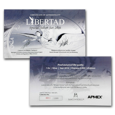 Dieses seltene und einmalige Set beinhaltet den Libertad in 1 Oz Feinsilber in der Prägequalität Proof sowie in der Prägequalität Reverse Proof. Die Reverse Proof Ausgabe ist ausschließlich in diesem edlen Set zu bekommen und ist somit Jahrgang 2016 auf nur 1.000 Stück weltweit streng limitiert. Selten RAR!