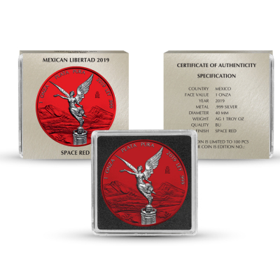 <<< Mexiko - Libertad Siegesgöttin 2019 - 1 Oz Silber Space Red | |