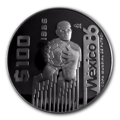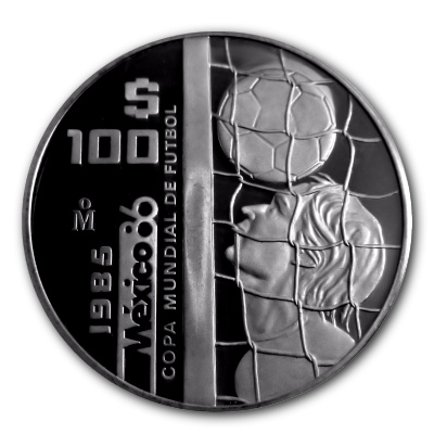 Zur Fussballweltmeisterschaft 1986 in Mexiko verausgabte Mexiko viele Gedenkmünzen Prägungen mit unterschiedlichen Nennwerten und Motiven sowohl in der Prägequalität Stempelglanz als auch in der höchsten Prägequalität Polierte Platte. | |