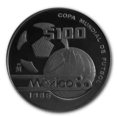 | Mexiko - 100 Pesos WM1986 Ball und Weltkugel - 1 Oz Silber PP | ||