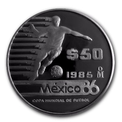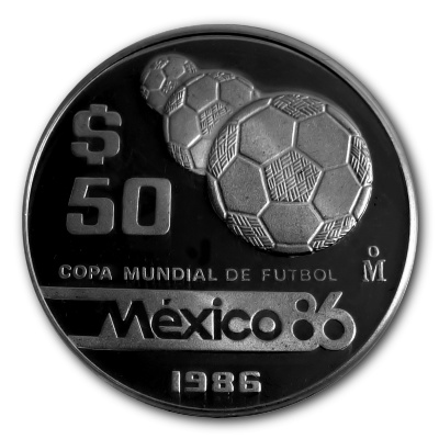 | Mexiko - 50 Pesos WM1986 Füsse mit Ball - Silbermünze | ||