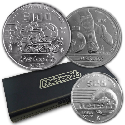 | Mexiko - 175 Peso WM1986 3-Coin-Set - Silbermünzen | ||