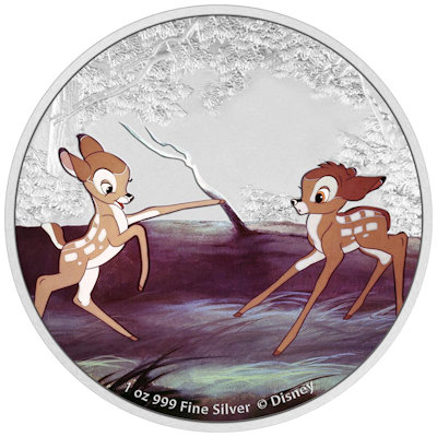 Anlässlich 80 Jahr Jubiläum Bambi verausgabt die NewZealand Mint diese wunderschöne Silber-Bambi und Feline Münzausgabe. Die Münze besteht aus 1 Oz Feinsilber in der höchsten Prägequalität Polierte Platte und ist auf nur 1.942 Stück weltweit streng limitiert. Die Auslieferung erfolgt im Original-Präsentationsetui mit Umverpackung und nummeriertem Echtheitszertifikat.
