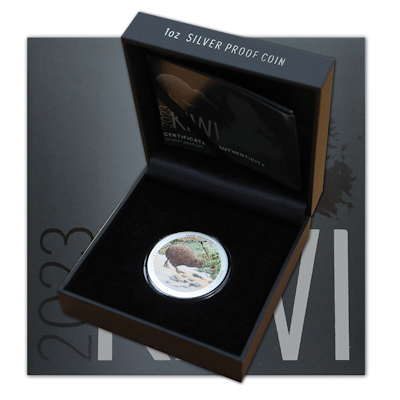 <<< Neuseeland - 1 NZD Kiwi 2023 - 1 Oz Silber - PP | |