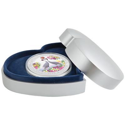 Diese 1 Oz Silbermünzen Serie widmet sich dem Thema der Liebe, so stehen die wunderschön colorierten Münzen ganz im Motto Liebe ist wunderbar (Love is Precious). Die Ausgaben kommen daher auch passend in einem Etui, das die Form eines Herzens trägt. Jede Münze ist auf nur 3.000 Stück weltweit streng limitiert und in der höchsten Prägequalität Polierte Platte produziert.