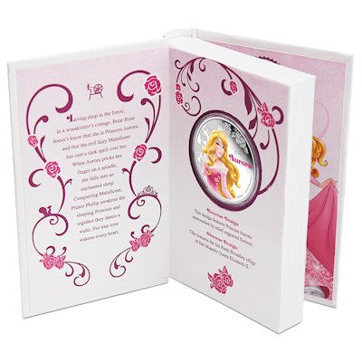 Es handelt sich hier um die zweite Ausgabe Aurora. Die Münze kommt in höchster Prägequalität Polierte Platte und ist zudem aufwendig coloriert. Die Verpackung ist einem Märchenbuch nachempfunden und rundet somit den Gesamteindruck dieser Ausgabe perfekt ab.