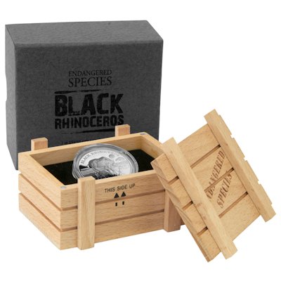 Die Ausgabe Schwarzes Nashorn von 2014 in echter Holzkisten-Hinguckerverpackung und einem wunderschönen Design.