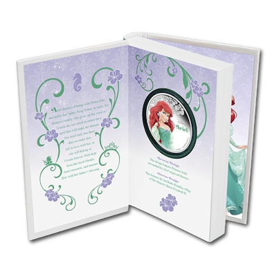 Es handelt sich hier um die 3. Ausgabe Ariel aus dieser wunderschön gestalteten Ausgabe. Die Münze kommt in höchster Prägequalität Polierte Platte und ist zudem aufwendig coloriert. Die Verpackung ist einem Märchenbuch nachempfunden und rundet somit den Gesamteindruck dieser Ausgabe perfekt ab.