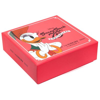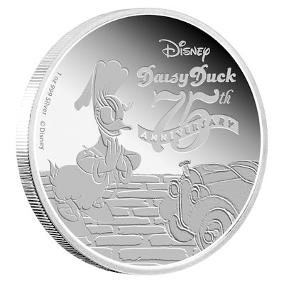 Dies ist die 3. Ausgabe einer neuen Serie, verausgabt von der New Zealand Mint die sich den beliebtesten Charakteren von Disney widmet. Diese Ausgabe zeigt Daisy Duck zum 75. Jubiläum