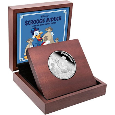 Dies ist die 4. Ausgabe einer neuen Serie, verausgabt von der New Zealand Mint die sich den beliebtesten Charakteren von Disney widmet. Diese Ausgabe zeigt Dagobert Duck wie er im deutschsprachigen Raum bekannt ist. In englisch heißt die Figur Scrooge McDuck.