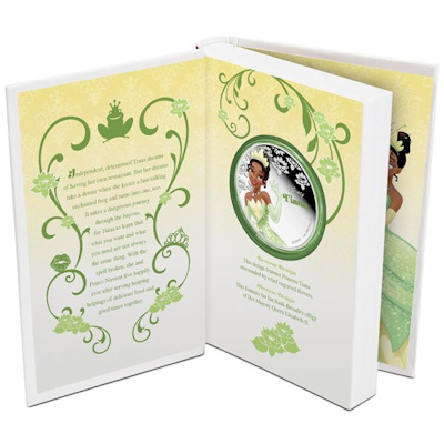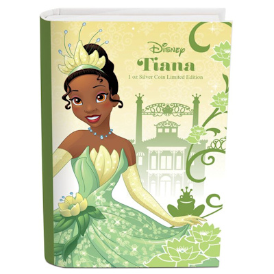 Es handelt sich hier um die Ausgabe Tiana. Die Münze kommt in höchster Prägequalität Polierte Platte und ist zudem aufwendig coloriert. Die Verpackung ist einem Märchenbuch nachempfunden und rundet somit den Gesamteindruck dieser Ausgabe perfekt ab.