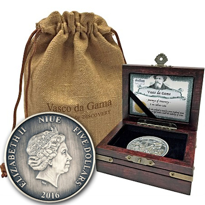 Es handelt sich hier um die dritte Ausgabe dieser ganz besonderen Münzserie die den historisch bekanntesten Entdeckungsreisen gewidmet ist. Nach Marco Polo und Columbus ist diese Ausgabe Vasco da Gama gewidmet. Die Verpackung wurde der damaligen Zeit nachempfunden. Das Holzetui ist fein gearbeitet und präsentiert die Münze perfekt.