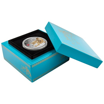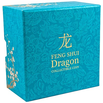 Es handelt sich hier um die Ausgabe Drache aus der Feng Shui-Münzserie. Die Münze kommt im Original-Etui mit kunstvoll gestalteter Umverpackung und nummerieretem Echtheitszertifikat und ist auf nur 5.000 Stück weltweit streng limitiert.
