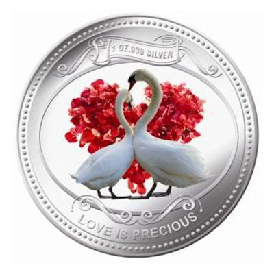 Diese Ausgabe zeigt zwei Schwäne die eine Herzform nachbilden, im Hintergrund ein Herz aus Rosen. Das Besondere dieser Ausgabe ist zudem die in Herzform gehaltene Verpackung. Ein ideales Geschenk zu allen romantischen Anlässen. Die Münze besteht aus 1 Oz Feinsilber in der höchsten Prägequalität Polierte Platte, ist aufwendig coloriert und ist auf nur 3.000 Stück streng limitiert. Die Auslieferung erfolgt im Original-Etui mit Umverpackung und nummeriertem Echtheitszertifikat.
