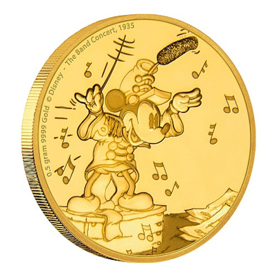 Die neueste Disney Münzen Ausgabe widmet sich der Mickey Mouse im Verlaufe der Zeit und zeigt hier die musikalische Seite der Mickey Mouse, das Konzert der Band.