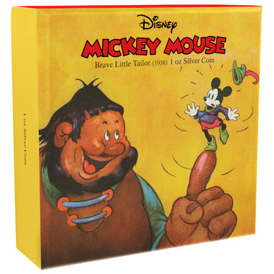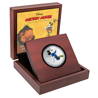 Die Disney Münzen Ausgabe aus der Reihe Mickey Mouse im Wandel der Zeit zeigt hier die Mickey Mouse als Tapferes Schneiderlein.