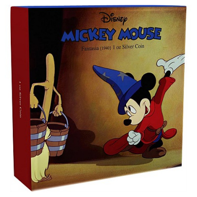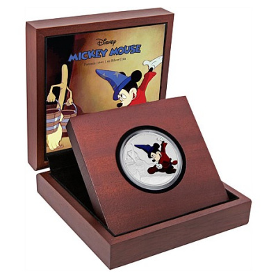 Die Disney Münzen Ausgabe aus der Reihe Mickey Mouse im Wandel der Zeit zeigt hier die Mickey Mouse in Fantasia.