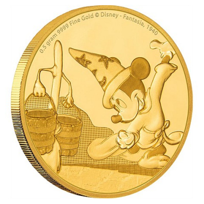 Die Disney Münzen Ausgabe aus der Reihe Mickey Mouse im Wandel der Zeit zeigt hier die Mickey Mouse in Fantasia.