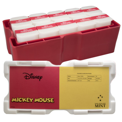 Diese neue Anlagemünze wird von der NewZealand Mint verausgabt und zeigt die Mickey Mouse als Steamboat Willie. Die Münze besteht aus 1 Oz Feinsilber in der Reinheit 999/1000 und wird zu 25 Stück in Kunststofftubes bzw. zu 250 Stück in Masterpacks verausgabt. Diese Anlagemünze ist auf nur 250.000 Stück weltweit streng limitiert.