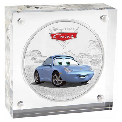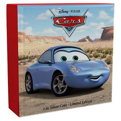 Es handelt sich hier um Sally aus dem Disney Pixar Film Cars. Die Münze besteht aus 1 Oz Feinsilber in der höchsten Prägequalität Polierte Platte, ist aufwendig coloriert und ist auf nur 10.000 Stück weltweit streng limitiert. Die Auslieferung erfolgt im Original-Präsentationsetui mit Umverpackung und nummeriertem Echtheitszertifikat.