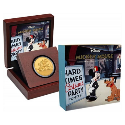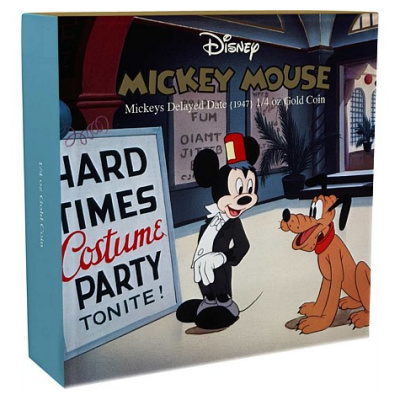 Die Disney Münzen Ausgabe aus der Reihe Mickey Mouse im Wandel der Zeit zeigt hier zeigt hier die Mickey Mouse Delayed Date (Mickey mit Verspätung).