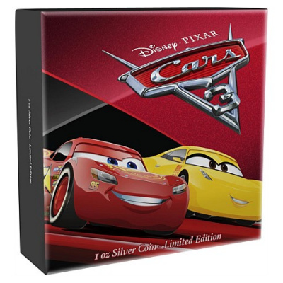 Es handelt sich hier um die neueste Cars Sammlermünzen Ausgabe die sich dem brand neuen Kinofilm Cars 3 widmet. Auf dem Motiv sind Lightning McQueen und Cruz zu sehen. Die Münze besteht aus 1 Oz Feinsilber in der höchsten Prägequalität Polierte Platte, ist aufwendig coloriert und ist auf nur 10.000 Stück weltweit streng limitiert. Die Auslieferung erfolgt im Original-Präsentationsetui mit Umverpackung und nummeriertem Echtheitszertifikat.