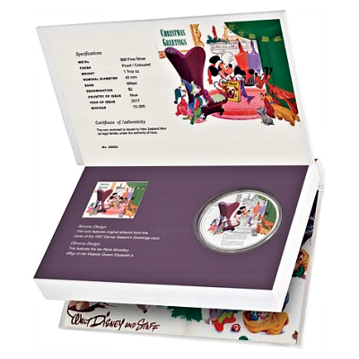 Diese Weihnachtsgrüße von Disney sind nicht nur wunderschön anzusehen, sondern auch eine originalgetreue Nachbildung der Disney Weihnachtskarte von 1957. Die Münze ist wunderschön coloriert und in der höchste Prägequalität Polierte Platte geprägt. Natürlich ist diese auf nur 10.000 Stück streng limitierte Ausgabe auch ideal zum Verschenken geeignet.