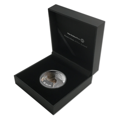 Mit dem Little Spotted Kiwi - Apteryx Owenii kommt die 2018er Kiwi Ausgabe. Die Münze ist 1 Oz Feinsilber schwer und ist in der höchsten Prägequalität Polierte Platte produziert und zudem aufwendig coloriert. Verausgabt wird die Münze von der New Zealand Post. Die Ausgabe ist weltweit auf nur noch 2.500(!!!) Stück limitiert. Die Auslieferung erfolgt im Original-Etui mit Umverpackung und nummeriertem Echtheitszertifikat.