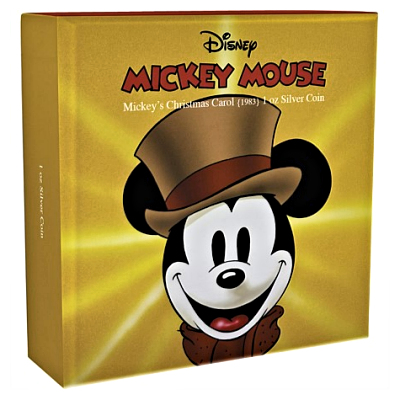 Die Disney Münzen Ausgabe aus der Reihe Mickey Mouse im Wandel der Zeit zeigt hier die Mickey Mouse mit dem Motiv Christmas Carol von 1983. Die Auslieferung erfolgt im Original-Etui mit Umverpackung und nummeriertem Echtheitszertifikat.
