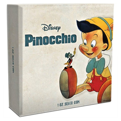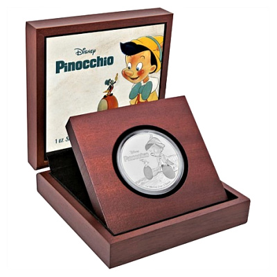 Diese Pinocchio Silbermünze feiert Disneys zweiten animierten Spielfilm. Der Film wurde am 7. Februar 1940 in New York uraufgeführt und gilt als der am schönsten realisierte und technisch perfekteste Disney-Zeichentrickfilme. Die Münze besteht aus 1 Oz Feinsilber in der höchsten Prägequalität Polierte Platte und ist auf nur 10.000 Stück weltweit streng limitiert. Die Auslieferung erfolgt im Original-Präsentationsetui mit Umverpackung und nummeriertem Echtheitszertifikat.