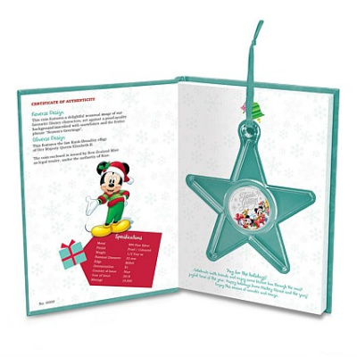 Diese Weihnachtsgrüße von Disney sind nicht nur wunderschön anzusehen, sondern können auch als Weihnachtsbaumschmuck verwendet werden. Die Münze ist wunderschön coloriert und in einen transparten Stern mit grüner Schlaufe eingefaßt, der sich direkt an Ihren Christbaum hängen läßt. Natürlich ist diese auf nur 10.000 Stück streng limitierte Ausgabe auch ideal zum Verschenken geeignet.