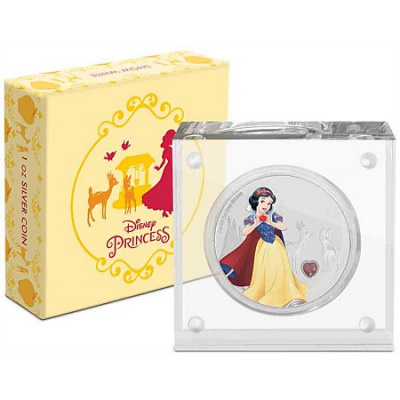 <<< Niue - 2 NZD Disney Schneewittchen mit Edelstein 2018 - 1 Oz Silber | |