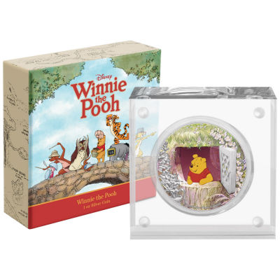 Diese entzückende 1 Oz Silbermünze von Disney Winnie the Pooh zeigt Pooh in herrlicher Farbe, als er sich aus seinem Fenster im 100-Morgen-Wald lehnt. Die Teilcoloriertung trägt zu diesem entzückenden Motiv bei und lässt das Silber durchscheinen. Die Nennwertseite zeigt das Bildnis von Ian Rank-Broadley Ihrer Majestät Königin Elizabeth II. Und die Münze ist gesetzliches Zahlungsmittel in Niue.