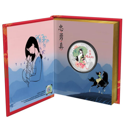 Diese Ausgabe ist dem auch vor kurzem neu ins Kino gekommenen Film / Hauptperson Mulan gewidmet. Die Münze besteht aus 1 Oz Feinsilber in der höchsten Prägequalität Polierte Platte, ist aufwendig coloriert und ist auf nur 2.000 Stück streng limitiert. Die Auslieferung erfolgt im Original-Etui mit Umverpackung und nummeriertem Echtheitszertifikat.