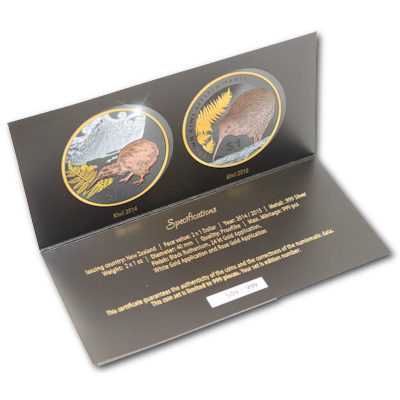 Es handelt sich hier um das Doppel Kiwi Set mit den Kiwi Ausgaben von 2014 und 2015 aus der edlen Golden Enigma Edition. Die 1 Oz schweren Feinsilbermünzen sind mit Black Ruthenium sowie Weiß und Rose Gold veredelt. Die Auflage für dieses edle Set beträgt lediglich 999 Stück weltweit. Die Auslieferung erfolgt im Original-Etui mit nummeriertem Echtheitszertifikat.