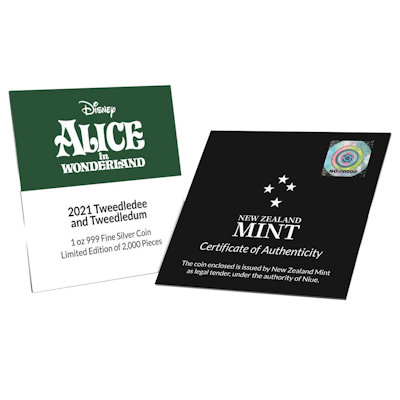 <<< Niue - 2 NZD Disney Alice (4.) Tweedledee & Tweedledum (TM) 2021 - 1 Oz Silber | |