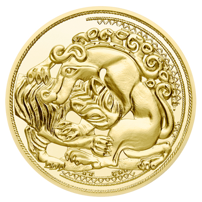 2500 Jahre vor unserer Zeit. Nomaden ziehen in den eurasischen Steppen umher: die Skythen. Die Münze führt ihr Talent zur Überhöhung wilder Tiere vor Augen und ihren außergewöhnlichen Sinn für Schönheit, geweckt und genährt vom magischen Glitzern eines ewig kostbaren Materials: Gold.
